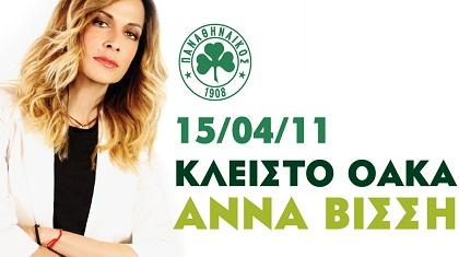 Αν αγαπάς τα τραγούδια της Άννας Βίσση έχεις κάθε λόγο να είσαι ενθουσιασμένος. Και αν επιπλέον αγαπάς τον Παναθηναϊκό, τότε δεν έχεις καμία δικαιολογία να μην δώσεις το παρόν αύριο, Παρασκευή 15 Απριλίου, στο κλειστό γήπεδο του ΟΑΚΑ!