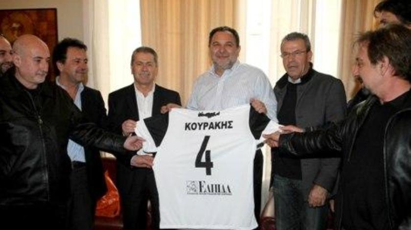 Επίσκεψη στο Μέγαρο της Λότζια έκαναν τα μέλη της διοικούσας επιτροπής της ΠΑΕ ΟΦΗ για να ευχηθούν και να δώσουν τα δώρα για την ονομαστική του γιορτή στον Γιάννη Κουράκη. Η διοίκηση των Κρητικών χάρισε μια φανέλα της ομάδας με το νούμερο «4» και το όνομα του αλλά και την τιμητική θέση του επίτιμου προέδρου του συλλόγου στον Δήμαρχο Ηρακλείου.