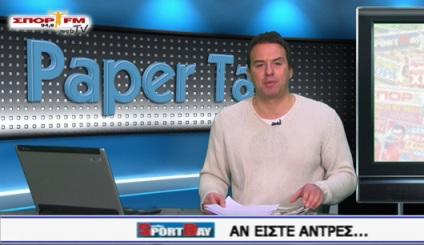 Με την εκπομπή Paper Talk, σας μεταφέρει όλα τα πρωτοσέλιδα του αθλητικού Τύπου της Πέμπτης (26/1), με τον Σωτήρη Κωσταβάρα να αναλύει τα κυριότερα θέματά τους.
