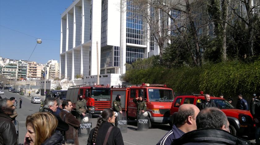 Μετά το πρωινό τηλεφώνημα για τοποθέτηση βόμβας, στο χώρο έσπευσαν η ασφάλεια, πυροτεχνουργοί και η πυροσβεστική. Ο χώρος ελέγχθηκε ενδελεχώς και σύμφωνα με την αστυνομία βρέθηκε στις τουαλέτες του πρώτου ορόφου, όπου βρίσκεται η αίθουσα που θα εκδικαζόταν η υπόθεση, ένα αντικείμενο, δίχως να επιβεβαιώνεται αν πρόκειται για κάποιον εκρηκτικό μηχανισμό. Οι αρχές έδωσαν την άδεια για να επιστρέψει ο κόσμος στο κτίριο και μένει να φανεί αν θα αρχίσει η εκδίκαση ή θα πάρει αναβολή για κάποια άλλη μέρα.