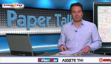 Με την εκπομπή Paper Talk, σας μεταφέρει όλα τα πρωτοσέλιδα του αθλητικού Τύπου της Πέμπτης (15/03), με τον Σωτήρη Κωσταβάρα να αναλύει τα κυριότερα θέματά τους.