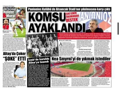 «Πληροφορηθήκαμε τις προηγούμενες ημέρες την απόφαση των αρχών της Σμύρνης για την κατεδάφιση του ιστορικού σταδίου Αλσανάκ. Του σταδίου στο οποίο ουσιαστικά ιδρύθηκε ο Ιστορικός Πανιώνιος και ξεκίνησε την λαμπρή αθλητική του διαδρομή, η οποία συνεχίζεται ως τις μέρες μας.