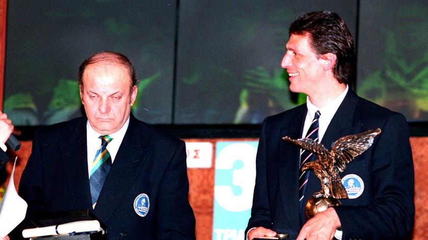 -την κριτική που είχε δεχτεί ο εκλιπών: «Ήταν ο πρώτος μου με κάλεσε στην Εθνική Ανδρών. Με είχε καλέσει και στο Ευρωπαϊκό Πρωτάθλημα του 1980, αλλά δεν είχα πάει στη διοργάνωση λόγω τραυματισμού. Άκουσε τα χειρότερα όταν με πήρε στο Μουντιάλ του 1994, γιατί είχα κάποια χρόνια παραπάνω. Είχαν πέσει τότε να τον φάνε. Λόγω της κακής παρουσίας της ομάδας στην τελική φάση, δέχτηκε πολύ αρνητική κριτική. Ήταν λογική μεν, αλλά υπερβολική. Πάντα σε αυτές τις περιπτώσεις ακούει τα περισσότερα ο προπονητής. Ήταν ένας άνθρωπος πολύ ψύχραιμος γενικά, αλλά εκείνη την περίοδο είχε χάσει την ηρεμία του. Ήταν εκνευρισμένος, ήθελε να μας περάσει κάποια πράγματα που δεν μπορούσε και τα πράγματα ήταν άσχημα».