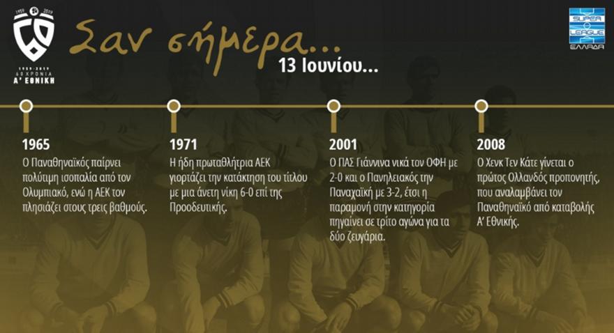 Ιστορική αναδρομή στη σημερινή ημέρα, 13 Ιουνίου, κάνει η επίσημη ιστοσελίδα της Σούπερ Λίγκας.