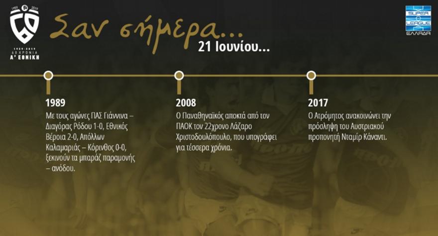 Ιστορική αναδρομή στη σημερινή ημέρα, 21 Ιουνίου, κάνει η επίσημη ιστοσελίδα της Σούπερ Λίγκας.
