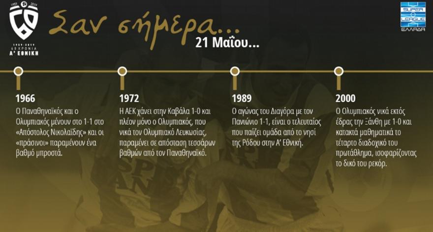 Ιστορική αναδρομή στη σημερινή ημέρα, 21 Μαΐου, κάνει η επίσημη ιστοσελίδα της Σούπερ Λίγκας.