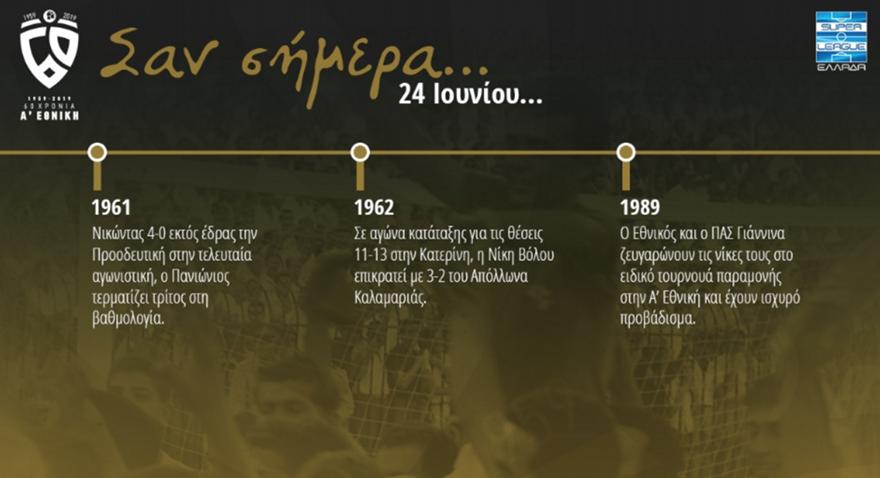Ιστορική αναδρομή στη σημερινή ημέρα, 24 Ιουνίου, κάνει η επίσημη ιστοσελίδα της Σούπερ Λίγκας.