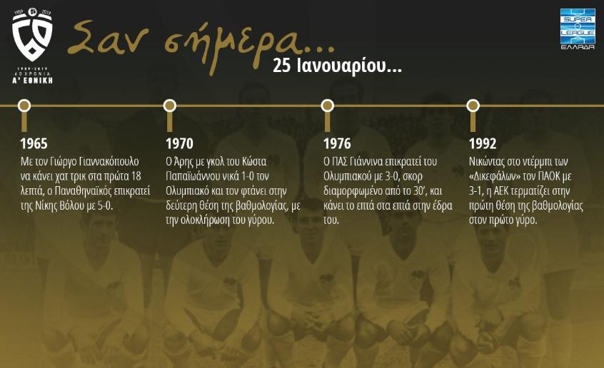Ιστορική αναδρομή στη σημερινή ημέρα, 25 Ιανουαρίου, κάνει η επίσημη ιστοσελίδα της Σούπερ Λίγκας.