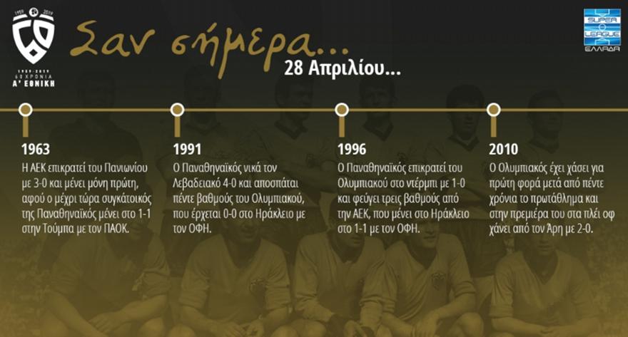 Ιστορική αναδρομή στη σημερινή ημέρα, 28 Απριλίου, κάνει η επίσημη ιστοσελίδα της Σούπερ Λίγκας.
