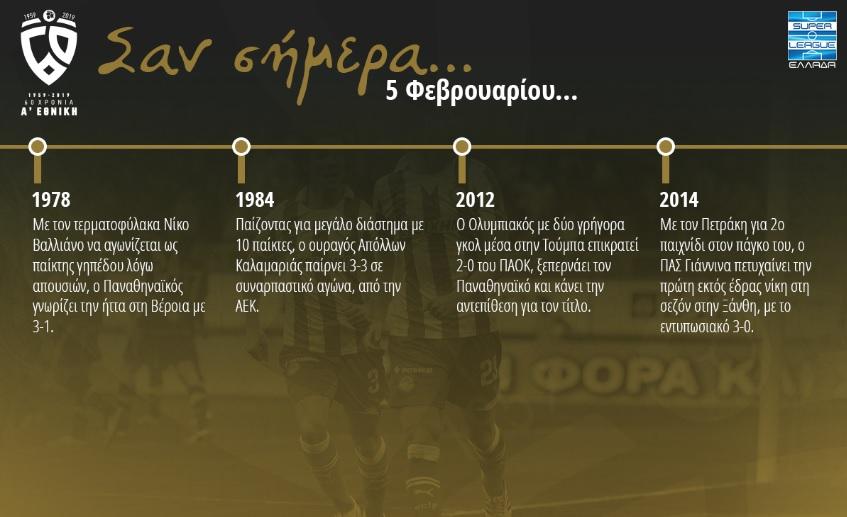Ιστορική αναδρομή στη σημερινή ημέρα, 5 Φεβρουαρίου, κάνει η επίσημη ιστοσελίδα της Σούπερ Λίγκας.