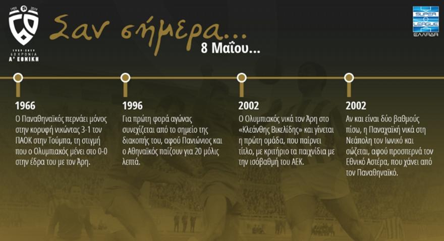 Ιστορική αναδρομή στη σημερινή ημέρα, 8 Μαΐου, κάνει η επίσημη ιστοσελίδα της Σούπερ Λίγκας.