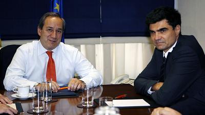 Πραγματοποιήθηκε το μεσημέρι της Παρασκευής (1/12), στο Υπουργείο Οικονομικών, η σύσκεψη μεταξύ του προέδρου της ΠΑΕ Παναθηναϊκός, Γιώργου Βαρδινογιάννη, του υπουργού Οικονομικών, Γιώργου Αλογοσκούφη του νέου δημάρχου Αθηναίων, Νικήτα Κακλαμάνη, και του πρώην δημάρχου, Θόδωρου Μπεχράκη, με θέμα το γήπεδο του Παναθηναϊκού.