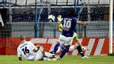 22’ ΓΚΟΟΟΟΛ για το Αιγάλεω. Ο Τσέζαρεκ έκανε την πολύ καλή μπαλιά-τρύπα στον Κουμορτζί και αυτός με ένα πολύ ψύχραιμο πλασέ νίκησε τον Ερνάντο και έκανε το 1-0.