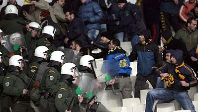 Η ήττα της ΑΕΚ από τον Παναθηναϊκό, αλλά και ο τρόπος με τον οποίο ήρθε, εξόργισε τους οπαδούς της ΑΕΚ και τα έκτροπα δεν έλειψαν. Οπαδοί της "Ένωσης" συγκρούστηκαν με τους σεκιούριτι του γηπέδου, αλλά και ανθρώπους των ΜΑΤ έξω από το ΟΑΚΑ, με συνέπεια να υπάρχουν ελαφρά τραυματίες και λίγες υλικές ζημιές σε αυτοκίνητα που βρίσκονταν στους χώρους έξω από το στάδιο. Τρεις αστυνομικοί στο νοσοκομείο, εκ των οποίων ο ένας τραυματισμένός από πέτρα στο μάτι.