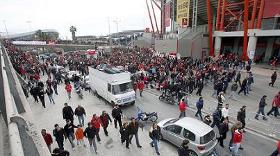17:27 Έφτασε η αποστολή του Ολυμπιακού στο γήπεδο, και έγινε δεκτή με επιδοκιμασίες.