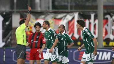 Ο εκνευρισμός από τη φάση του πέναλτι και μετά ήταν δεδομένος και ο Θανάσης Μπριάκος αμέτοχος, με τις ενέργειές του, καθόρισε το αποτέλεσμα της αναμέτρησης. Μέχρι το 93ο λεπτό μικροευκαιρίες χαρακτήριζαν τις προσπάθειες των δύο ομάδων για την επίτευξη ενός τέρματος, με την Καλαμαριά να δείχνει σε ελαφρώς καλύτερη κατάσταση. Την κακή του βραδιά, πάντως, επιβεβαίωσε ο ρέφερι του αγώνα, ο οποίος και έκρινε το ματς. Με απίστευτα λάθη σε πειθαρχικό έλεγχο (έπρεπε να είχε αποβάλει τον Μπούσι, αλλά και τον Γαλανόπουλο σε εν ψυχρώ κτύπημα στον Νίνη), καταλογίζει πέναλτι στο τρίτο λεπτό των καθυστερήσεων, σε μαρκάρισμα που δεν υπήρξε ποτέ από τον Τζιόλη στον Χαλαουανί. Ο Αλβανός παίκτης της Καλαμαριάς ισοφάρισε στο τελικό 1-1 στο 94΄ και στην πορεία του πανηγυρισμού του προβαίνει σε άσεμνη και ανεπίτρεπτη χειρονομία προς τον πάγκο του Παναθηναϊκού, χωρίς ο Μπριάκος και πάλι να κάνει το οτιδήποτε. Λίγα λεπτά πριν είχε αποβάλει για ψύλλου πήδημα τον Περόνε, παρατηρώντας τον με δεύτερη κίτρινη κάρτα, χωρίς σημαντικό λόγο. Έτσι οι «πράσινοι» έμειναν για τρίτη σερί αγωνιστική χωρίς νίκη, έχασαν τις περισσότερες πιθανότητες για να διεκδικήσουν τη δεύτερη θέση και μάλλον θ΄ αρκεστούν στην τρίτη, που σημαίνει και έξοδο για μία ακόμη σεζόν στο Κύπελλο ΟΥΕΦΑ. Για την Καλαμαριά η ισοπαλία αυτή σηματοδοτεί μία σημαντική εξέλιξη στην προσπάθεια που κάνει για να μείνει στην κατηγορία!