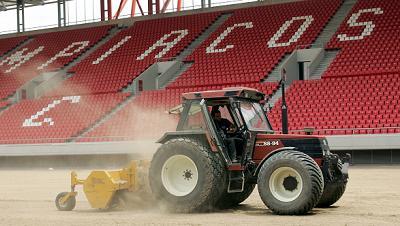 Ο Παναγιώτης Αραμπάνος, εκπρόσωπος της «Greenscape» και «Hellas Sod» τόνισε: «Ο χλοοτάπητας μας ζητήθηκε να είναι ο καλύτερος που υπάρχει στην Ευρώπη. Πρόκειται για μια νέα ποικιλία που έχει τεράστια αντοχή στη χρήση. Ο αγωνιστικός χώρος έχει βελτιωθεί αρκετά το τελευταίο διάστημα. Μάλιστα όταν είδαν οι Άγγλοι το χόρτο απορούσαν που θ' αντικατασταθεί. Ο χλοοτάπητας θα είναι ίδιος με του ΟΑΚΑ, του Παγκρήτιου σταδίου και του γηπέδου της Νέας Σμύρνης. Θα αυξηθεί η χρήση του χλοοτάπητα πάνω από το 20% και θα μπορεί να γίνεται τουλάχιστον μία προπόνηση την εβδομάδα».