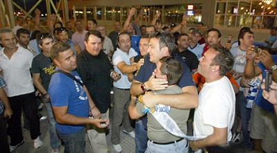 Το σύνθημα «Αντώνη, προχώρα και άλλαξέ τα όλα» δονούσε την ατμόσφαιρα κατά τη χθεσινή (12/7) αποθεωτική υποδοχή του Αντώνη Ρέμου στο αεροδρόμιο «Μακεδονία» από 200 φίλους του Ηρακλή. Ο γνωστός τραγουδιστής και πρωτοπόρος της νέας προσπάθειας στα διοικητικά των «κυανολεύκων», συνοδευόμενος από τον Αχιλλέα Μπέο, δεν είχε χρόνο να ανταποδώσει την αγάπη του κόσμου της ομάδας, αφού ο Μπάμπης Ξανθόπουλος τον «απήγαγε» μέσα από το πλήθος, προκειμένου να τον οδηγήσει στο προκαθορισμένο ραντεβού του με τον πρόεδρο του Ερασιτέχνη, Νίκο Παναγόπουλο. Λίγες ώρες νωρίτερα, συγκεκριμένα στις 10:30 το πρωί της Πέμπτης, μία επιστολή έφτανε στα γραφεία του Ερασιτέχνη. Ο Νίκος Παναγόπουλος την έπαιρνε στα χέρια του και διάβαζε τα χαρμόσυνα νέα…