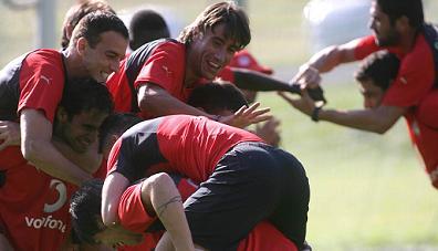 Η αφόρητη ζέστη στο Ζέεφελντ μπορεί να δυσκολεύει το έργο των πρωταθλητών, τουλάχιστον οι ποδοσφαιριστές του Ολυμπιακού το διασκεδάζουν, την ίδια ώρα όμως που η διοίκηση της ομάδας, κάθεται σε αναμμένα κάρβουνα. Το πολυαναμενόμενο ραντεβού με τον Νέρι Καστίγιο πήρε παράταση μιας μέρας μετά από αίτημα του Μεξικανού και τα πάντα θα ξεκαθαρίσουν στη συνάντηση της Τετάρτης. «Μυθική» πρόταση της Μάντεστερ Σίτι για τον 23χρονο άσο, με τον αγγλικό σύλλογο να προσφέρει 15 εκ ευρώ. «Πρώτη» για Ραούλ Μπράβο σήμερα, ατομικό ακολούθησε στο πρωινό πρόγραμμα όπως και ο Λάτσκο, κανονικά προπονήθηκαν αμφότεροι το απόγευμα. Ραούλ Μπράβο: «Θα φτάσουμε ψηλά». Πρώτη φιλική πρόβα για τους πρωταθλητές το απόγευμα της Τετάρτης(19:00) ενάντια στην γερμανική Ουντερχάγκινγκ.