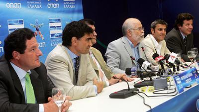 Πραγματοποιήθηκε την Τετάρτη η κοινή συνέντευξη Τύπου της Σούπερ Λίγκας και της ΟΠΑΠ ΑΕ. Οι δύο πλευρές, με αφορμή την χορηγία του Οργανισμού προς τη διοργανώτρια αρχή του πρωταθλήματος, έθεσαν ως στόχο την βελτίωση του ελληνικού ποδοσφαίρου και την επιστροφή του κόσμου στα γήπεδα. Στο πάνελ των ομιλητών βρίσκονταν ο Γιάννης Βαρδινογιάννης , ο Σωτήρης Κωστάκος, ο αντιπρόεδρος της Λίγκας, Κώστας Πηλαδάκης και ο γενικός διευθυντής, Γεώργιος Κυριακός. Το «παρών» έδωσε και ο υφυπουργός Αθλητισμού, Γιώργος Ορφανός, ο οποίος τόνισε μεταξύ άλλων: «Η χορηγία αυτή, όπως είπαν και οι προλαλήσαντες έχει συγκεκριμένους στόχους. Τη βία, το ντόπινγκ και να γίνει ένα πρωτάθλημα Νέων με καλύτερες προϋποθέσεις».