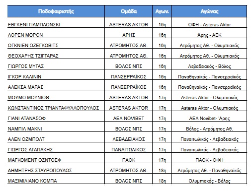 Οι παίκτες που δηλώθηκαν να εκτίσουν τιμωρία τις προσεχείς αγωνιστικές: