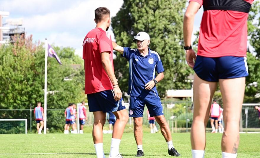Αρχικά μίλησε για το β’ στάδιο προετοιμασίας, με την «ερυθρόλευκη» αποστολή να επιστρέφει στις 29/7 στο Σίνταμ και στις 2/8 να παίζει με Χέρενφεν.