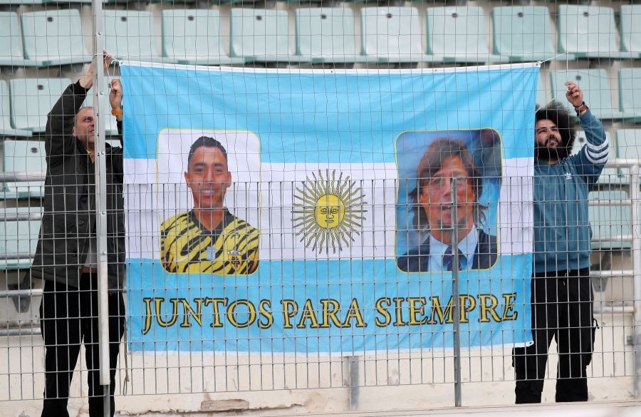 Ένα πανό στα χρώματα της σημαίας της Αργεντινής, με τις μορφές του προπονητή και του αρχηγού της ομάδας σηκώθηκε στις κερκίδες του Πανθεσσαλικού με το μήνυμα (στα ισπανικά) «Μαζί για πάντα».