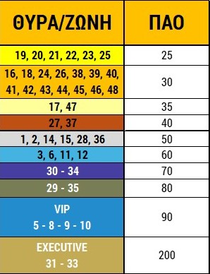 ΟΙ ΤΙΜΕΣ ΤΩΝ ΕΙΣΙΤΗΡΙΩΝ ΑΝΑ ΘΥΡΑ: