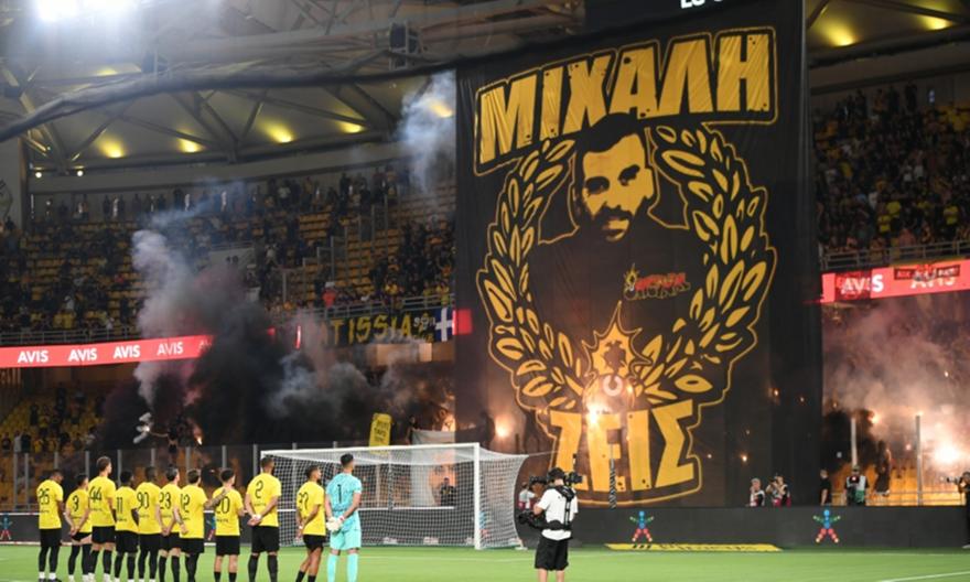 Πριν από την έναρξη του ματς, σύσσωμη η «κιτρινόμαυρη» οικογένεια τίμησε τη μνήμη του αδικοχαμένου οπαδού της ομάδας Μιχάλη Κατσούρη, μέσω ενός συγκινητικού βίντεο που προβλήθηκε στα μάτριξ του γηπέδου, την ώρα που οι παίκτες των δύο ομάδων είχαν παραταχθεί μπροστά στο επιβλητικό κορεό που είχαν ετοιμάσει οι οπαδοί και το οποίο αναρτήθηκε μπροστά στη θύρα 21.