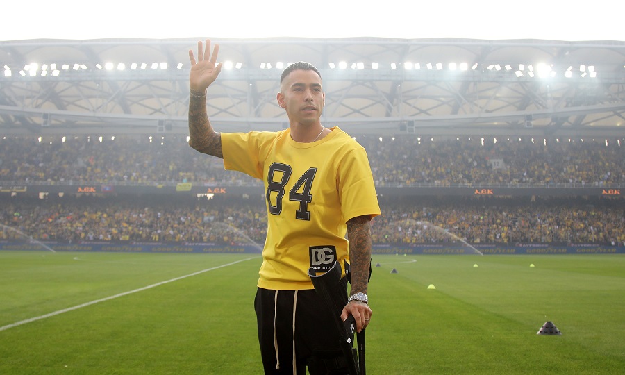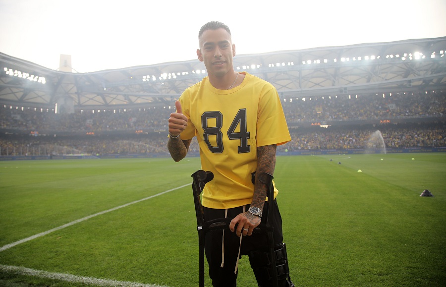 Ακόμα και με… πατερίτσες, ο Σέρχιο Αραούχο είναι εκεί! Ο αρχηγός της ΑΕΚ βρίσκεται στην OPAP Arena για το ματς-φιέστα της ΑΕΚ με τον Βόλο και αποθεώθηκ.