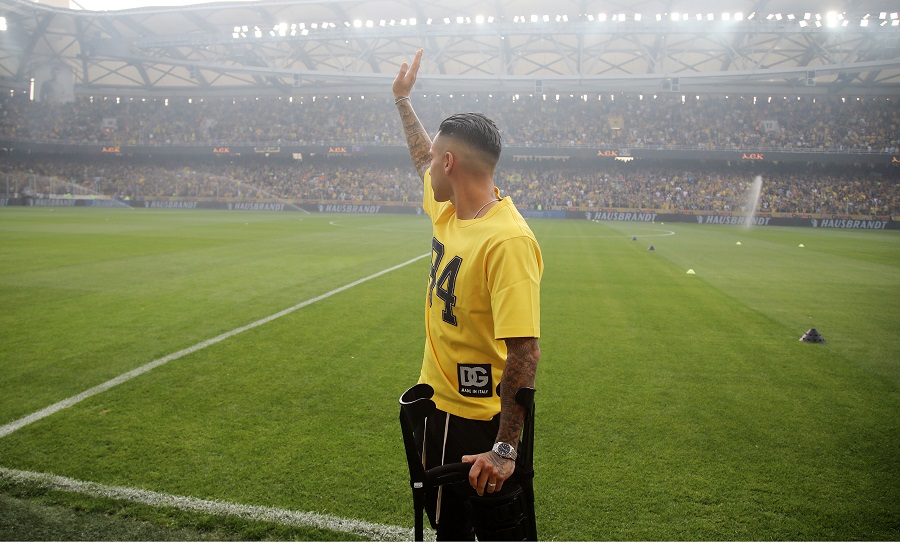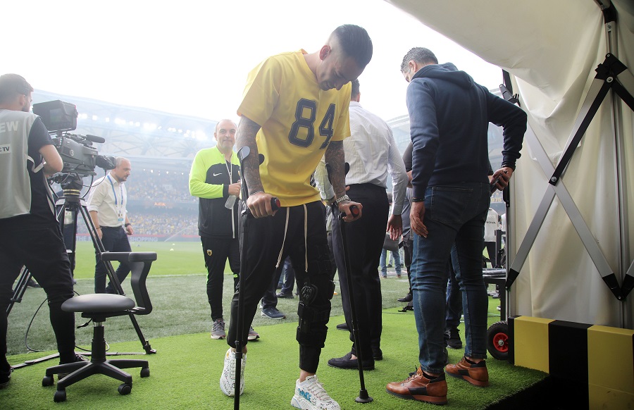 Λίγο πριν το ματς, βγήκε στον αγωνιστικό χώρο στηριζόμενος σε πατερίτσες, λόγω του σοβαρού τραυματισμού που τον κρατάει μακριά από τις αγωνιστικές υποχρεώσεις των «κιτρινόμαυρων».