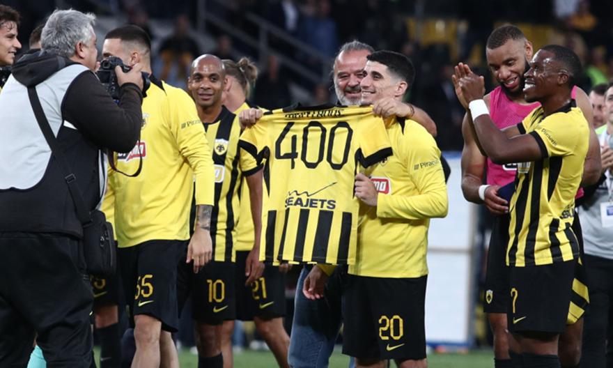 Μάλιστα, ο κ. Ηλιόπουλος επιφύλασσε και μια έκπληξη στον Πέτρο Μάνταλο, με αφορμή το ματς-ορόσημο του Έλληνα άσου που έφτασε τις 400 συμμετοχές με την ΑΕΚ!