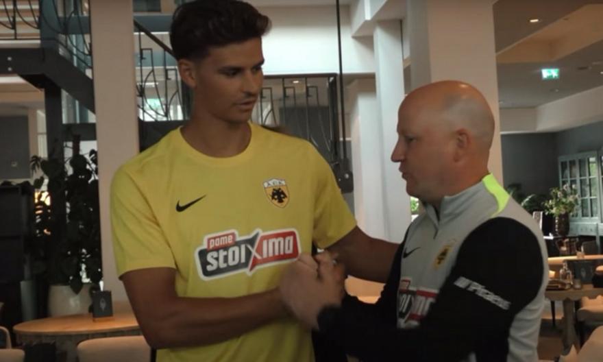 Η κάμερα του ΑΕΚ TV ήταν εκεί σε κάθε βήμα του σε αυτά τα πρώτα εικοσιτετράωρά του στο νέο του περιβάλλον, με τον Πορτογάλο στόπερ να έχει ένα θερμό τετ-α-τετ με τον Μάρκο Νίκολιτς, και μία χειραψία με τον Χαβιέρ Ριμπάλτα.