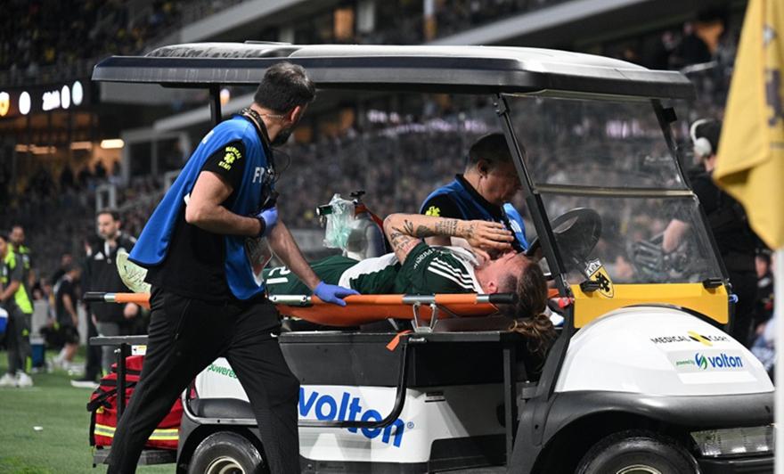 Ωστόσο ο έμπειρος στόπερ, έδειξε ότι δεν μπορεί να συνεχίσει και δευτερόλεπτα αργότερα έπεσε ξανά στον αγωνιστικό χώρο και αφού δέχθηκε τις πρώτες βοήθειες, τον επιβίβασαν σε ασθενοφόρο προκειμένου να μεταβεί εσπευσμένα στο νοσοκομείο.
