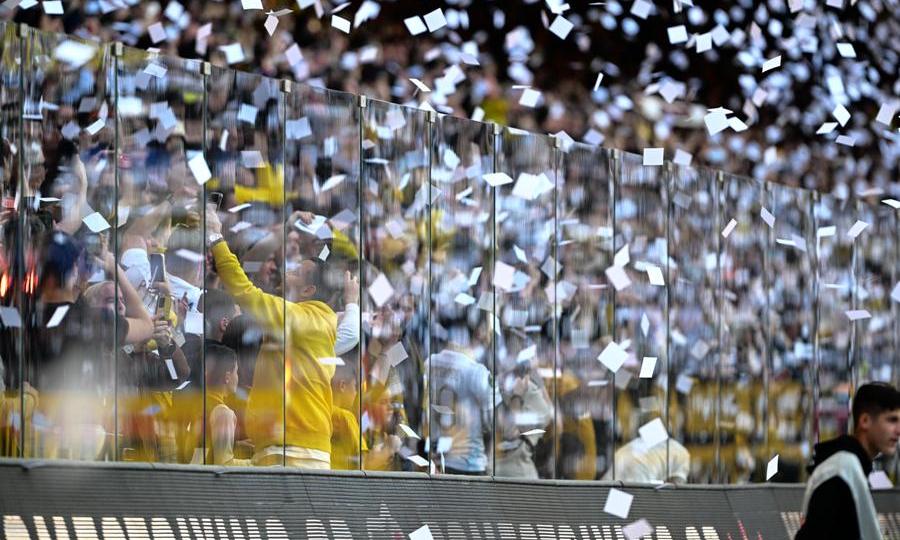 Κατά την είσοδο των δύο ομάδων στον αγωνιστικό χώρο, η Allwyn Arena γέμισε με χαρτάκια, δημιουργώντας μια χαρακτηριστική εικόνα στις εξέδρες. Η κερκίδα της Ένωσης «πήρε φωτιά», με τον κόσμο να δίνει ένταση και παλμό από τα πρώτα λεπτά.