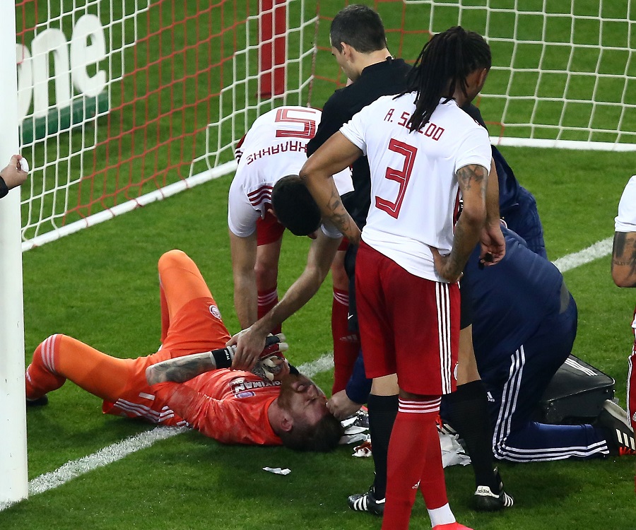Λίγο πριν συμπληρωθούν 30’ αγώνα, ο Πορτογάλος τερματοφύλακας τραυματίστηκε στο κεφάλι κατά τη διάρκεια της αναμέτρησης με τον Παναιτωλικό στο Φάληρο, λόγω της επικίνδυνης προβολής που έκανε ο Αντονί Μουνιέ, έπειτα από εκτέλεση φάουλ του Άλβαρες.