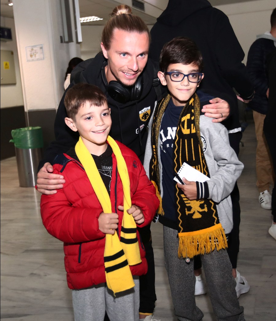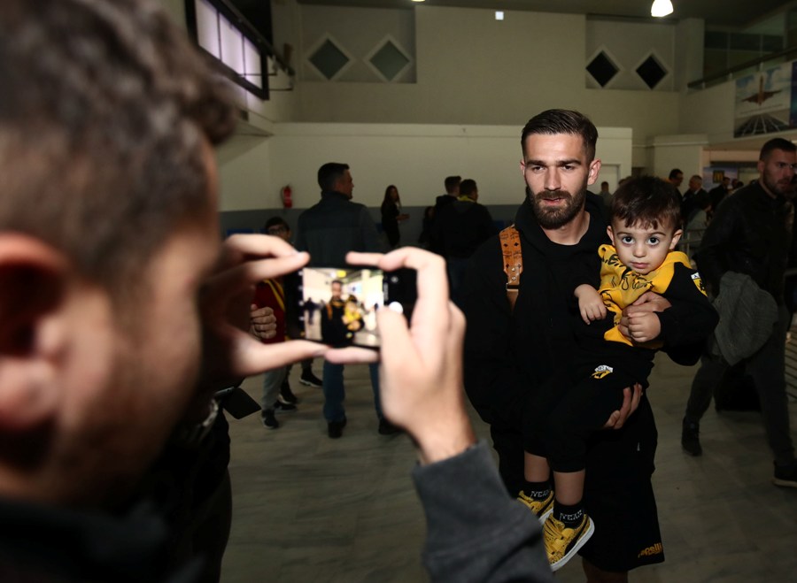 Οι παίκτες (με επίκεντρο τους Λιβάγια-Ολιβέιρα) υπέγραψαν αρκετά αυτόγραφα στους συγκεντρωμένους και τα αρκετά παιδιά που βρέθηκαν στο αεροδρόμιο και τους άκουσαν να τους ζητούν τη νίκη στο σαββατιάτικο ματς, όπου θα υπάρχει και κιτρινόμαυρη εξέδρα.