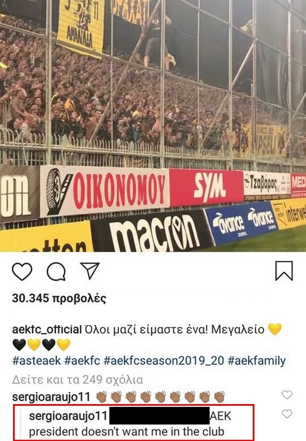 Αναφορά στον Δημήτρη Μελισσανίδη έκανε ο Σέρχιο Αραούχο σε ένα σχόλιο του σε ανάρτηση της ΠΑΕ στο προφίλ της για τη νίκη στην Τρίπολη.