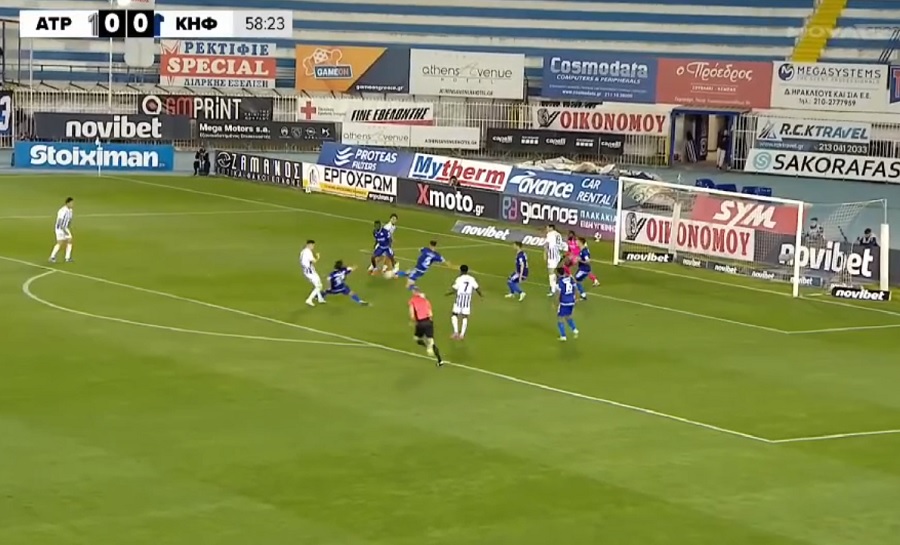 Ο Μίχορλ έκανε το τελείωμα μέσα από την περιοχή, ο Ρουκουνάκης έκανε καθυστερημένα το τάκλιν και φαίνεται να βρίσκει τον παίκτη των γηπεδούχων, προτού η μπάλα περάσει εκτός της τελικής γραμμής του γηπέδου.