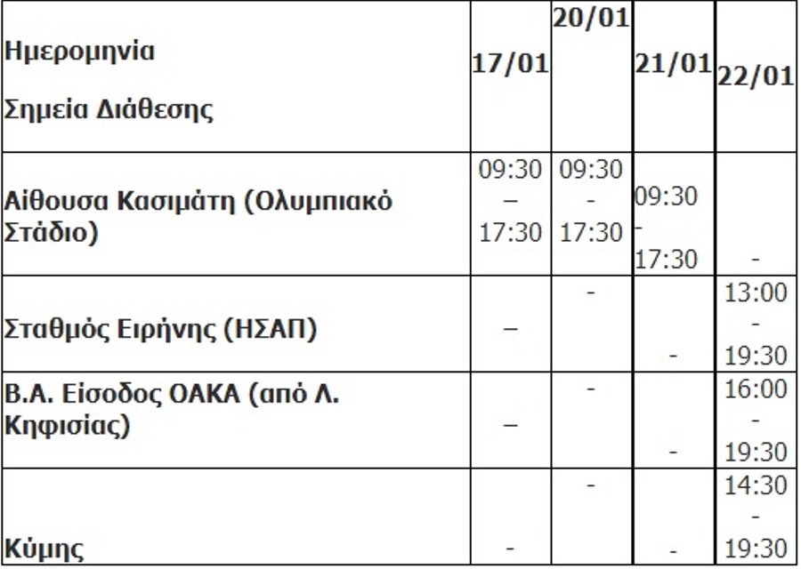 Η διάθεσή των εισιτηρίων στα εκδοτήρια θα γίνεται ως εξής: