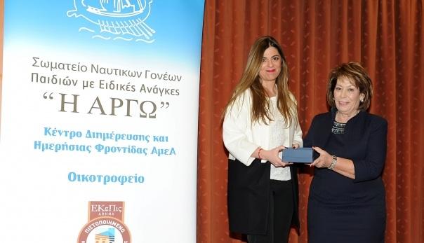 Το βραβείο εκ μέρους του Βαγγέλη Μαρινάκη, παρέλαβε η σύζυγος του, Αθανασία: «Θέλω να ευχαριστήσω για αυτό το βραβείο την κ. Παπαστελιανού, όλους από το Διοικητικό Συμβούλιο του σωματείου «Η ΑΡΓΩ», τους εθελοντές, τους γονείς και όλους αυτούς που επενδύουν με την καρδιά τους και την ψυχή τους για το ίδρυμα αυτό. Αυτό το βραβείο είναι σημαντικό αλλά μπροστά στην ικανοποίηση και την χαρά που μπορεί να νοιώθουμε με την προσφορά μας, είναι πολύ λίγο. Εύχομαι σε όλους , σε όσους μπορούν, να βοηθάνε, γιατί είναι τόσο καλός ο σκοπός και δίνουμε τόσο μεγάλη χαρά στα παιδιά και τους γονείς τους, που είναι πιστεύω απαραίτητο».
