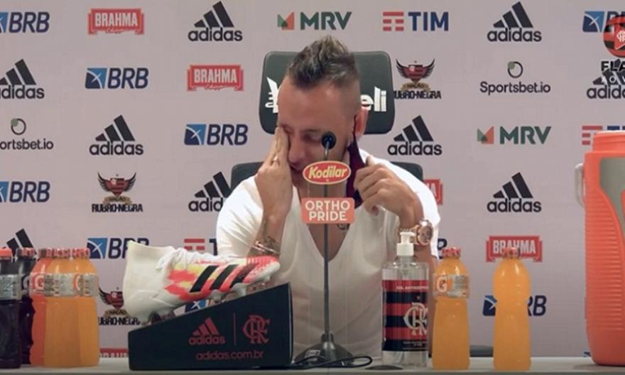 ?SE EMOCIONO RAFINHA! El jugador deja Flamengo y decidio realizar una conferencia despedida: sus excompaneros del plantel interrumpieron y el no evito largarse a llorar. pic.twitter.com/2Ixs1sa67G