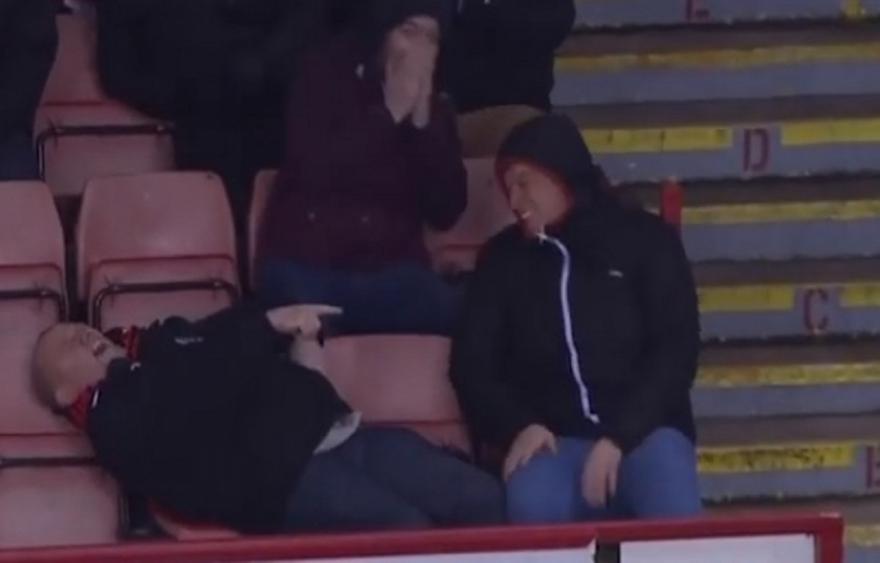 Ο οπαδός σωριάστηκε φαρδύς – πλατύς κάτω και όποιος δει το βίντεο θα πρέπει να ζηλέψει και να σκεφτεί σοβαρά για τους φίλους του, αν δεν θα έκαναν το ίδιο πράγμα.