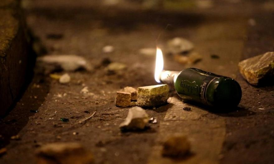 Ομάδα αγνώστων βρέθηκε στο σημείο (στην οδό Ταξιαρχών) και εκτόξευσε πάνω από 15 βόμβες μολότοφ.