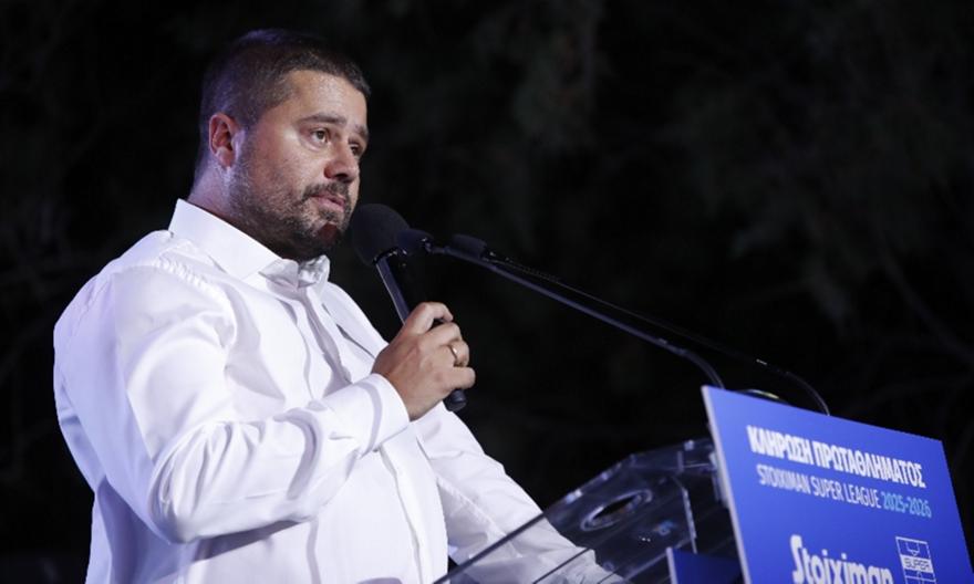 «Καλησπέρα, φίλες και φίλοι του ελληνικού ποδοσφαίρου. Να συγχαρώ τη Super League για αυτή την οργάνωση. Καλή επιτυχία στις ομάδες που παίζουν Ευρώπη. Εύχομαι να πάνε τη χώρα μας πιο ψηλά στο UEFA Ranking. Αυτός είναι ο επόμενος στόχος, και γι’ αυτό θα διευκολύνουμε τις ομάδες με αναβολές.