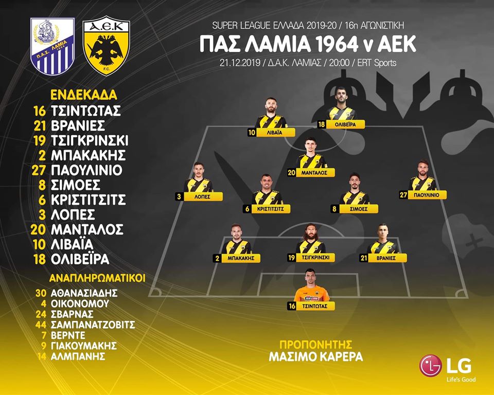 Χωρίς ιδιαίτερες εκπλήξεις και με 3-5-2 θα παραταχθεί σε ακόμα μία αναμέτρηση η ΑΕΚ κόντρα στη Λαμία για τη 16η αγωνιστική της Super League.