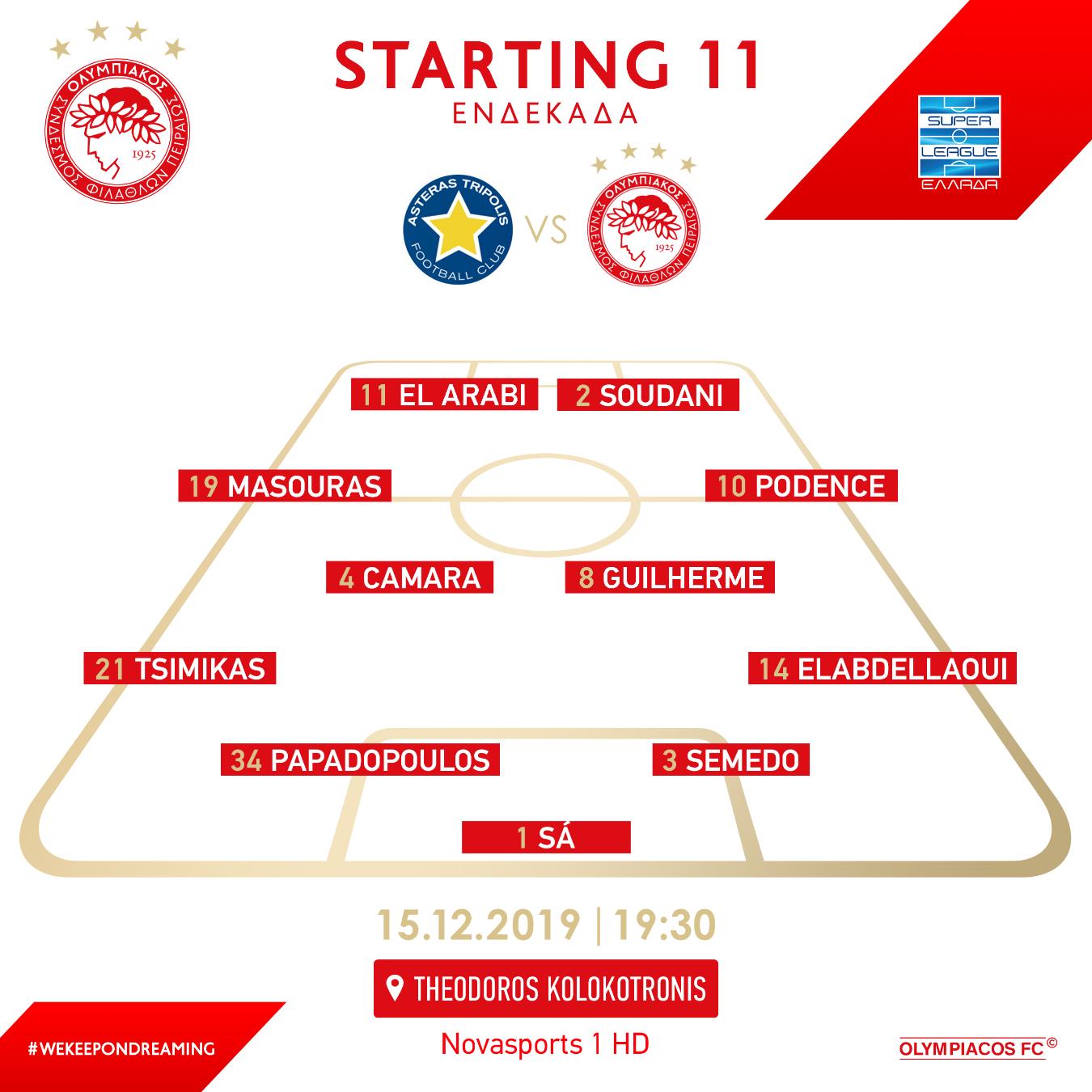 Η ενδεκάδα του Ολυμπιακού κόντρα στον Αστέρα Τρίπολης.