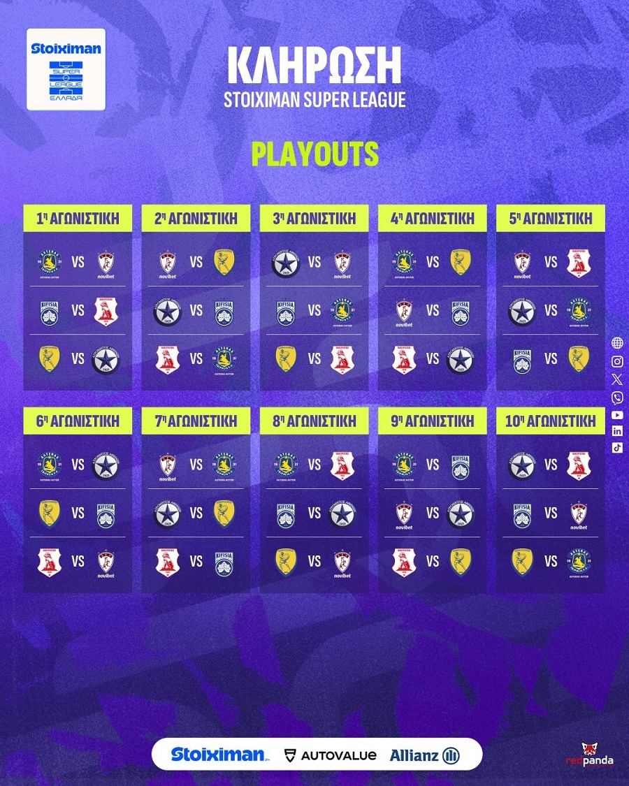 Ο θάνατός σου, η ζωή μου… Γνωστό έγινε από τη διοργανώτρια αρχή και το πρόγραμμα των 10 αγωνιστικών των playouts της Stoiximan Super League.