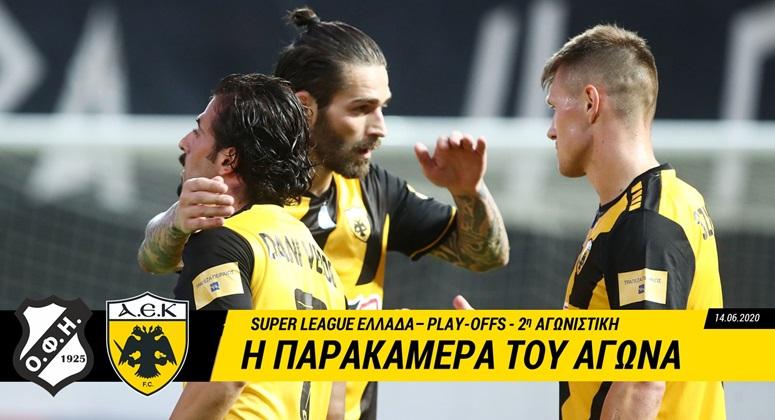 Την πρώτη της νίκη στη διαδικασία των Play-Offs πέτυχε το βράδυ της Κυριακής η ΑΕΚ, η οποία επικράτησε στο Ηράκλειο του ΟΦΗ 0-2 και πέρασε στη δεύτερη θέση της βαθμολογίας.