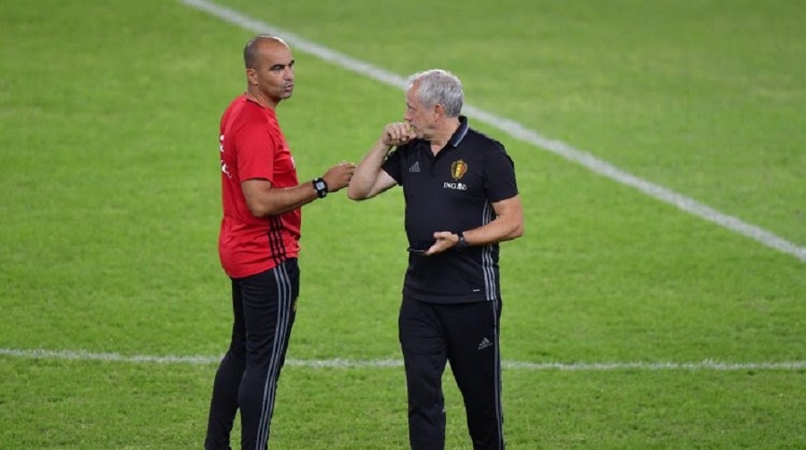 *ο αναλυτής Χέρμαν Ντε Λάντσερ με τον Ρομπέρτο Μαρτίνεθ στην κοινή τους θητεία στην εθνική Βελγίου